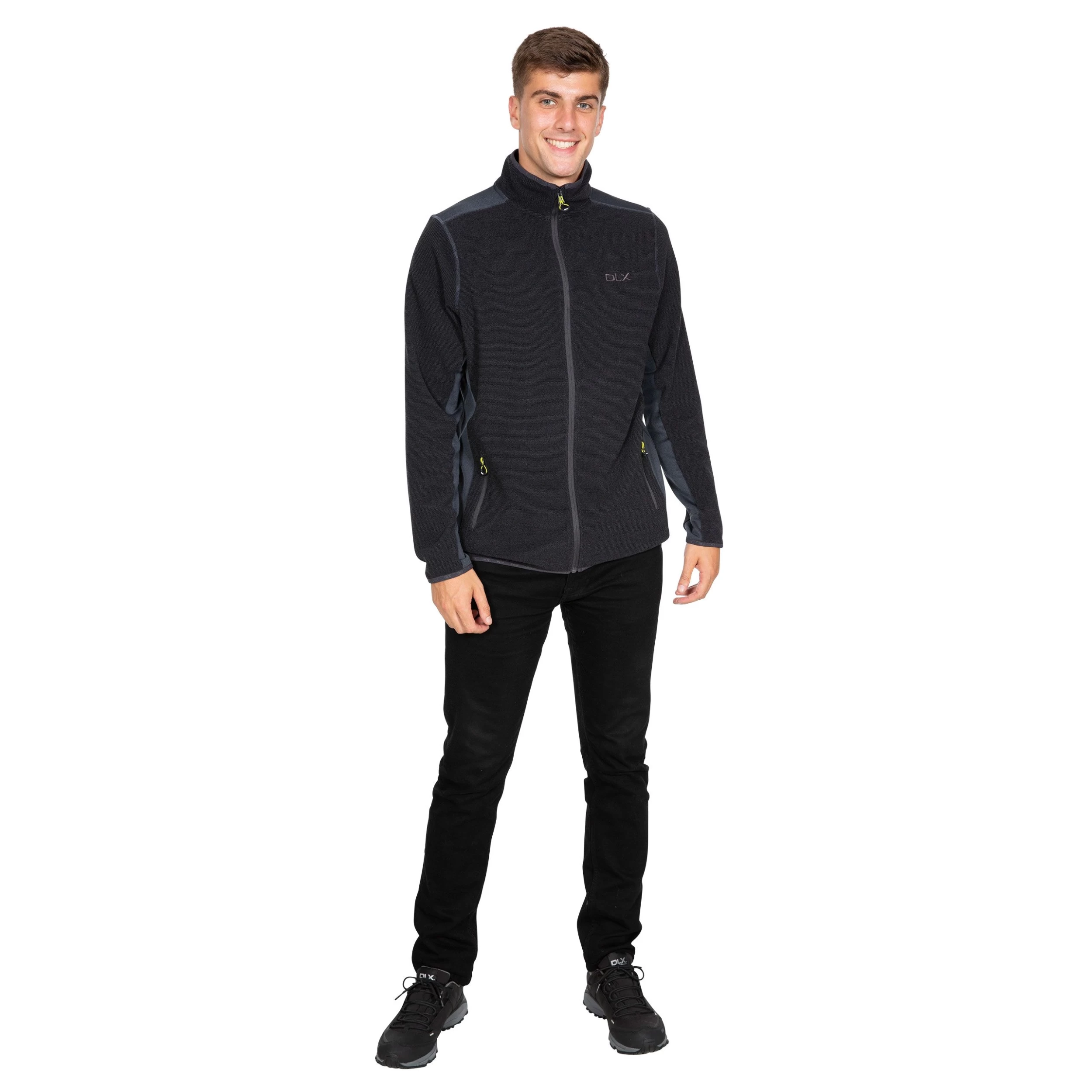 The Sturgess men’s fleece is designed for life in extremes, featuring a high neck, long sleeves, an embroidered logo badge at the chest and branded binding at the cuffs and hem. The fleece jacket is decorated with contrasting neon yellow details at the full zip-front fastening and 2 side zip pockets. Give fleece a chance with the versatile Sturgess DLX mens fleece.