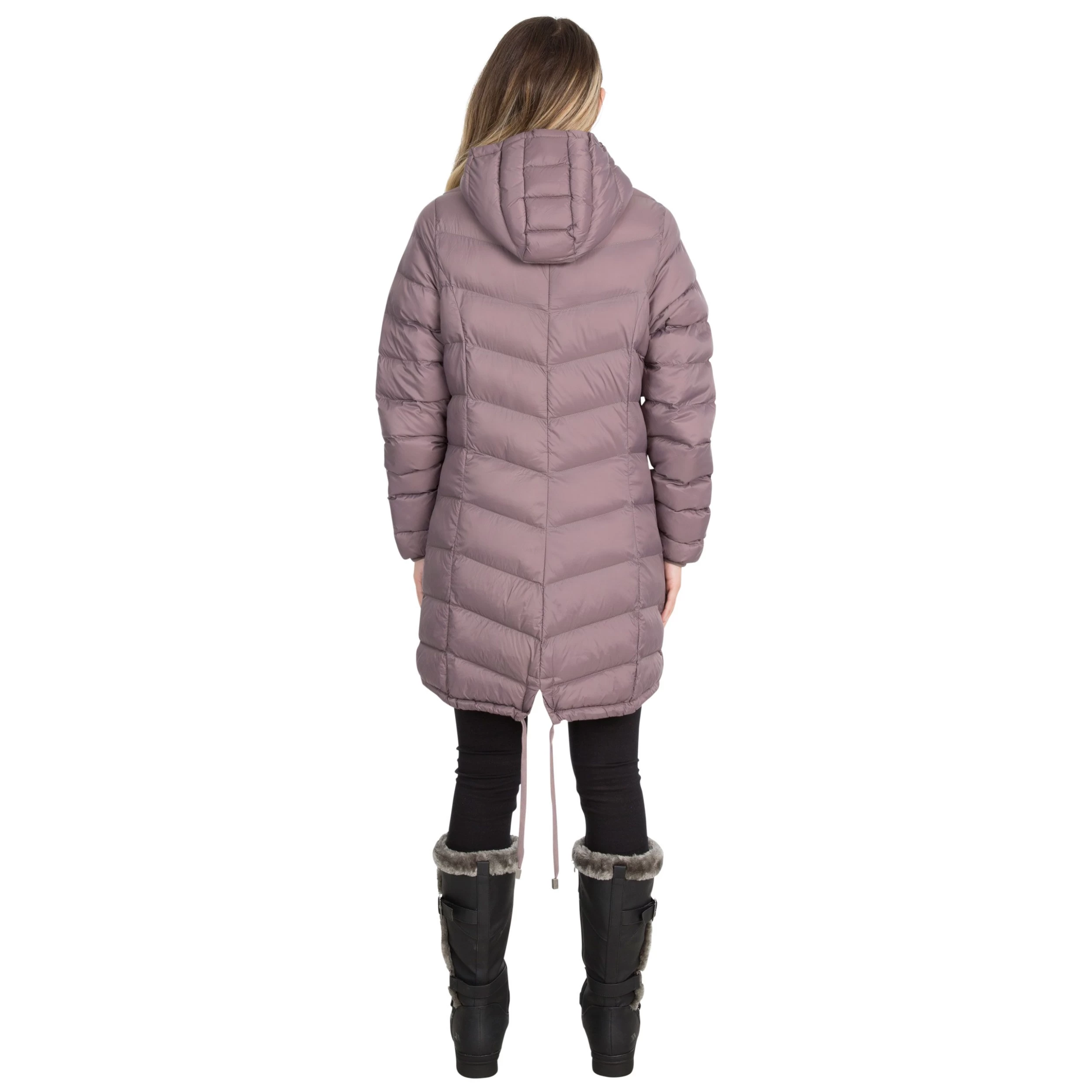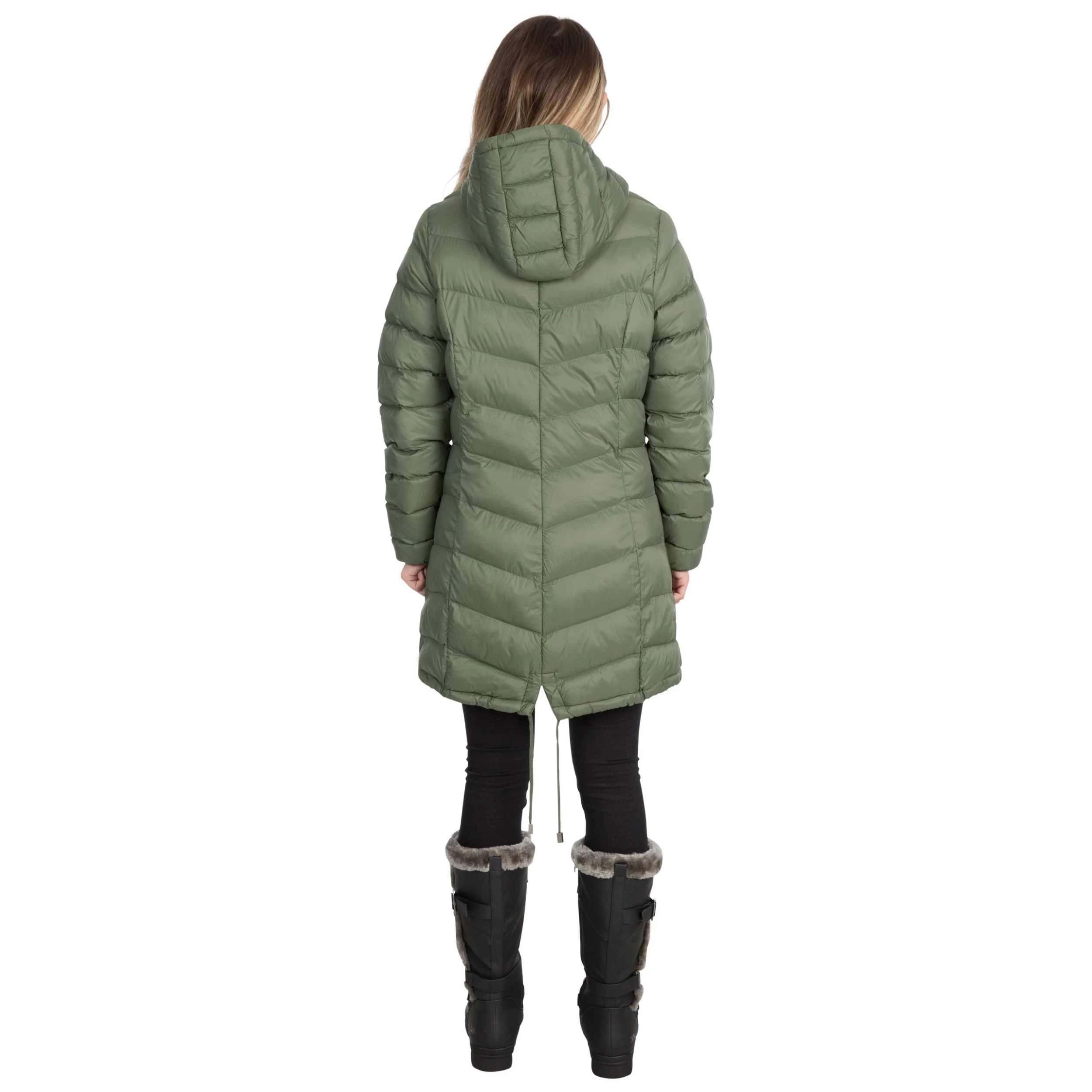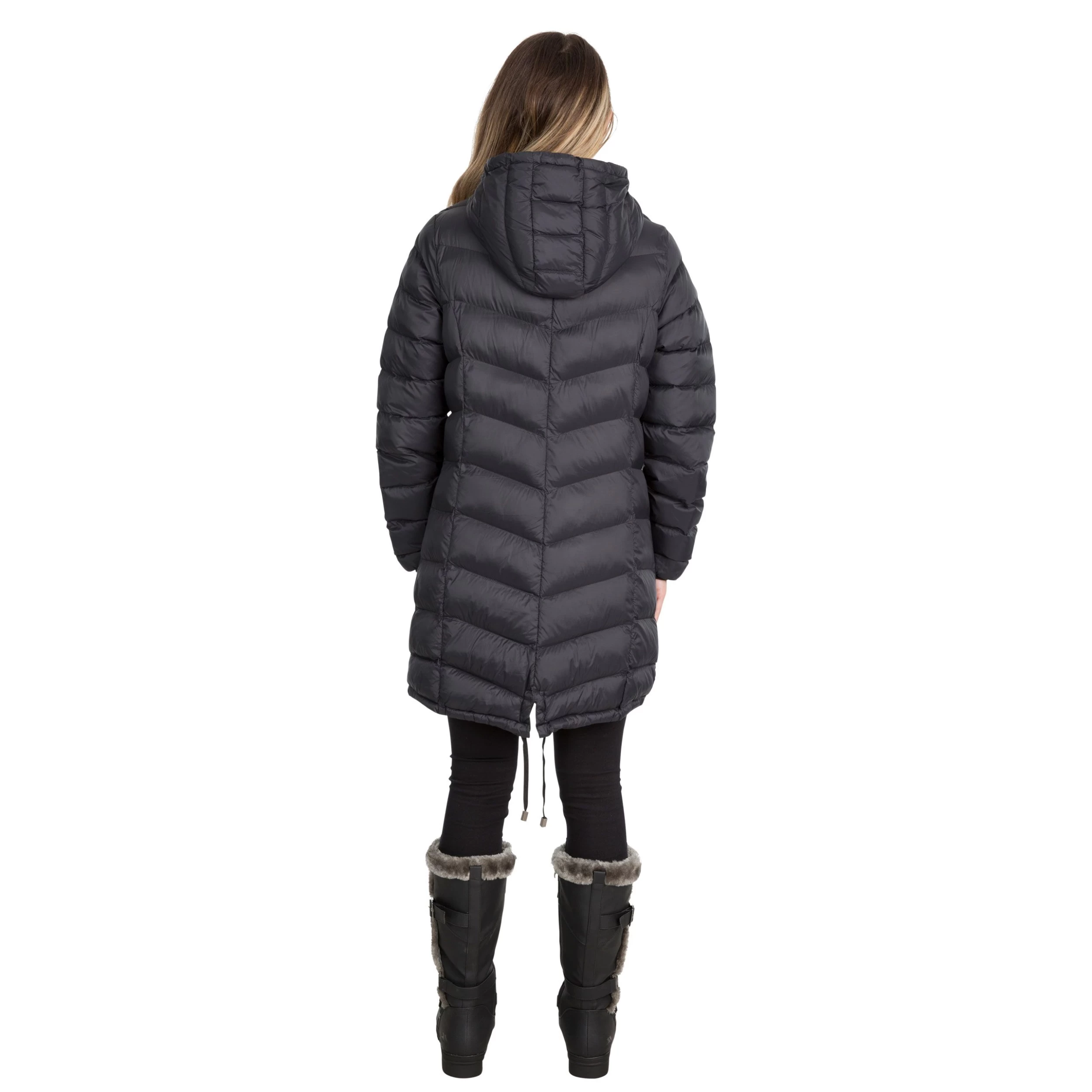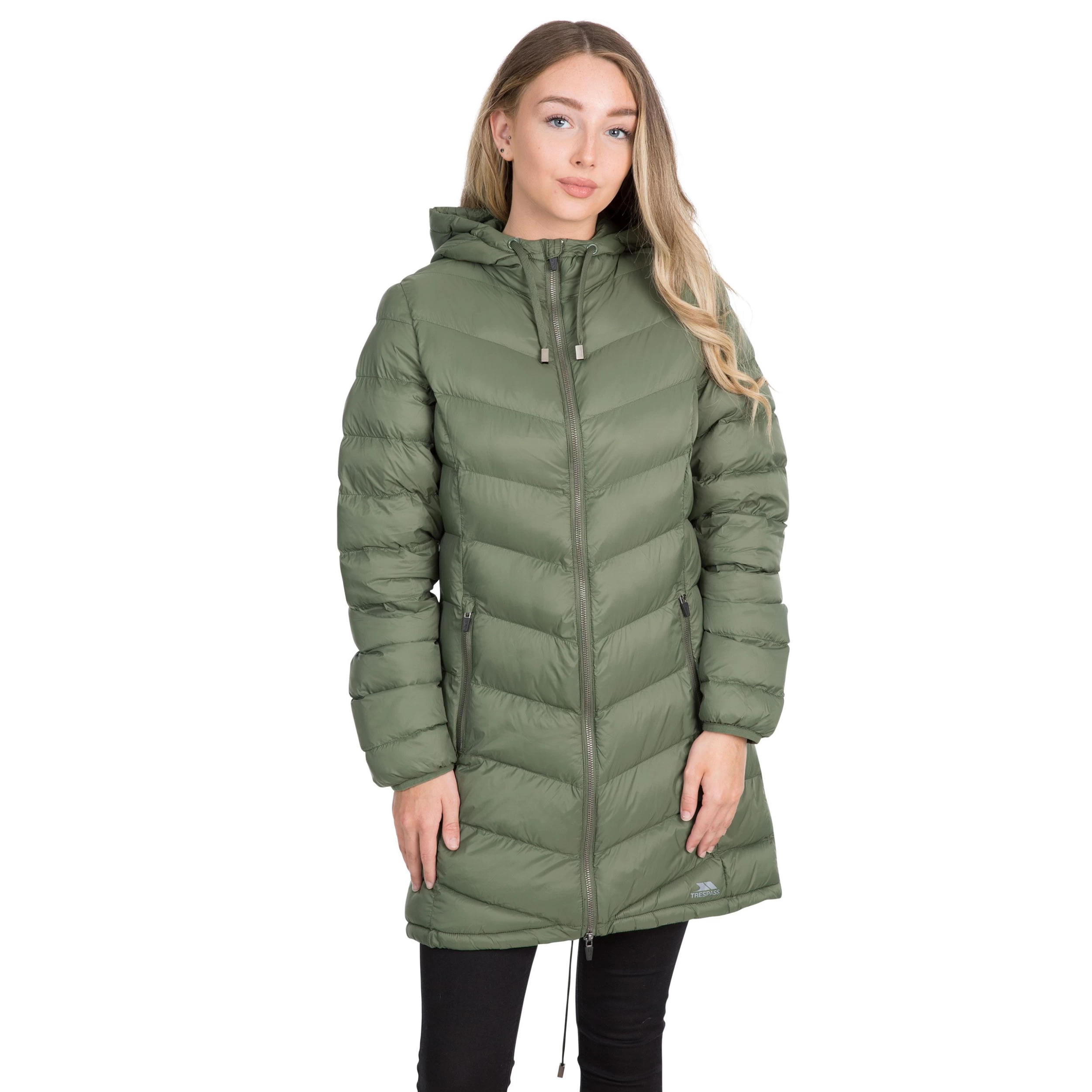 The Rianna women’s puffer jacket is expertly woven in a long-length fit with a lightweight design and is stuffed with downtouch padding. It features a hood with dual pulleys at the base long sleeves with elasticated cuffs an inner storm flap 2 side zip pockets and a dual zip fastening at the front. The name ‘Rianna’ is borrowed from Welsh ‘Rhiannon’ the Goddess of Fertility. It’s fair to say that this padded jacket is your new baby.
