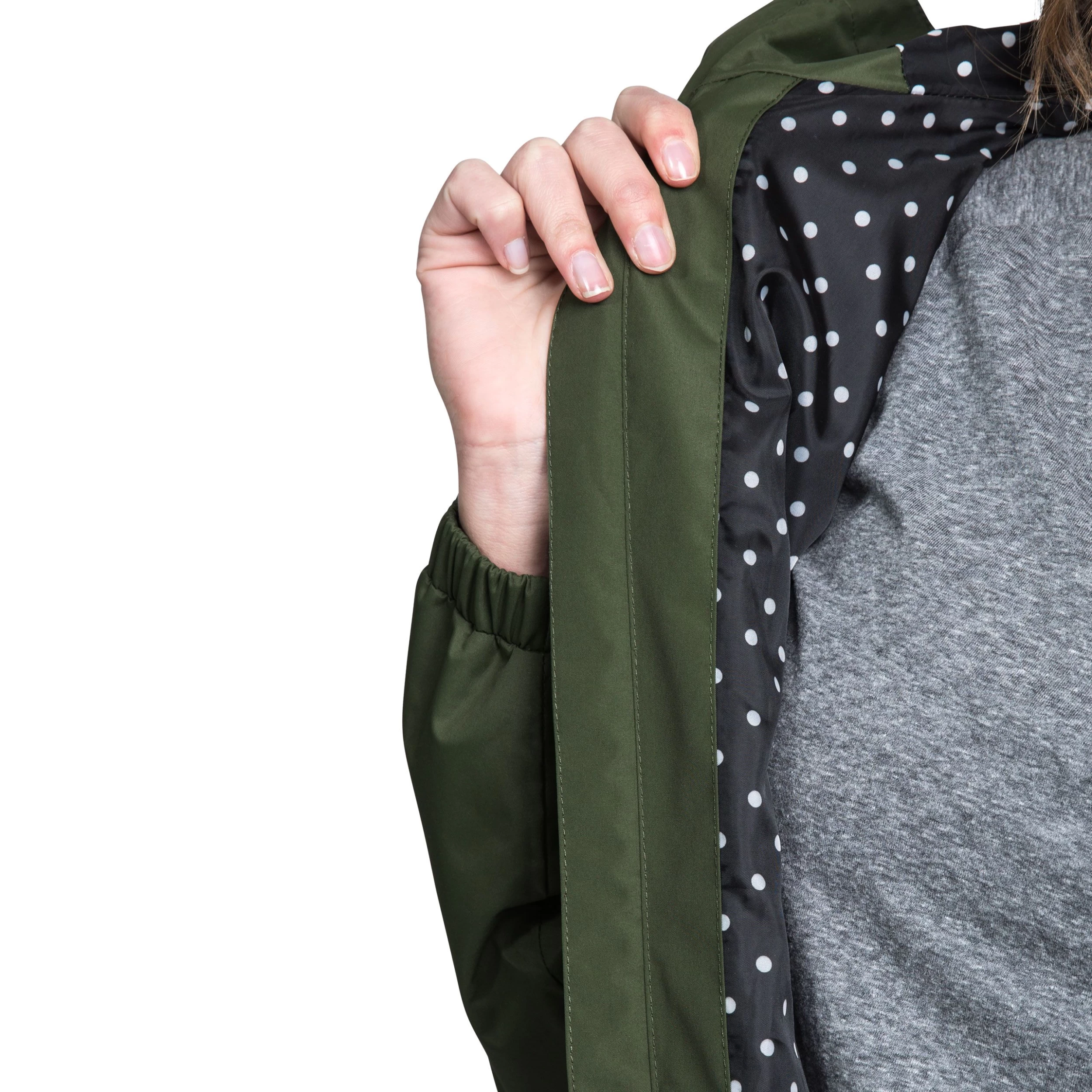 - Printed Lining. Finished with a printed dotted design for a statement lining.